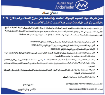 عطاء 44/ع/2025 الخدمات المصرفية لعمليات الشركة المصرفية