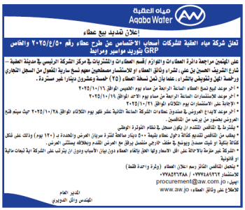 عطاء 50/ع/2025 توريد مواسير ومرابط GRP (تمديد بيع)